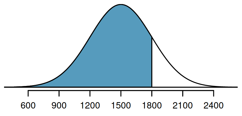 SAT skorları için ortalama 1500, standart sapma 300 iken 1800’den düşük puan alma ihtimali kaçtır? 1800 puan yüzde kaçlık dilime denk gelmektedir?
